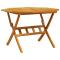 Table pliable de jardin Ø110x75 cm bois d'acacia solideCette table de jardin en bois au design pratique est parfaite pour ajouter une touche de charme rustique à votre jardin, terrasse ou patio. Bois d'acacia massif : le bois d'acacia massif est un matériau naturel magnifique. Le bois d'acacia un bois dur tropical, qui est dense, robuste et durable. Fonction pliable : la table peut être pliée pour économiser de l'espace lorsqu'elle n'est pas utilisée. Ventilé : cette table de jardin avec une conception à lattes permet à l'eau de s'écouler, ce qui le rend imputrescible et lui confère une longue durée de vie. Dessus stable : le dessus stable de la table à manger est idéal pour placer votre boisson ou toute autre nécessité dont vous avez besoin à portée de main. Surface facile à nettoyer : la surface à finition à l'huile rend cette table pliable facile à nettoyer avec un chiffon humide. Bon à savoir : Pour que vos meubles d'extérieur restent beaux, nous vous recommandons de les protéger avec une housse imperméable.
