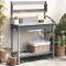 Table de rempotage avec évier gris bois massif de de sapinCette table de rempotage en bois est parfaite pour organiser et présenter vos plantes en pot à la maison, dans un jardin, sur un patio ou sur une terrasse. Bois de sapin massif : la table de rempotage est fabriquée en bois de sapin massif, ce qui lui confère robustesse et stabilité. Le bois de sapin massif est un matériau beau et durable qui conserve son intégrité même lorsqu'il est exposé à l'humidité. Il ne se dessèche pas et ne se déforme pas, ce qui en fait un choix fiable.Espace de rangement polyvalent : l'établi de rempotage, doté de 2 rails supérieurs, d'une étagère inférieure et de crochets métalliques sur le côté, offre suffisamment d'espace pour ranger les articles connexes tels que les petits outils de jardinage, le terreau, les engrais, etc.Design utile : la station d'empotage de jardin comprend un dessus extensible et un évier en plastique amovible. Vous pouvez accéder à votre évier à tout moment ou le recouvrir et profiter d'un espace de travail robuste.Ventilée : cette étagère inférieure avec un design à lattes permet à l'eau de s'écouler, ce qui la rend difficile à pourrir et assure une longue durée de vie.Applications multiples : la station d'empotage peut non seulement apporter un sentiment de nature à votre espace, mais peut également être un complément parfait à votre cour, jardin, serre, etc. Bon à savoir :Pour que vos meubles d'extérieur restent beaux, nous vous recommandons de les protéger avec une housse imperméable.
