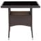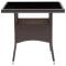 Table de salle à manger de jardin Marron Résine tresséeRenouvelez votre cour ou votre porche avec cette table à manger accueillante de patio. Elle peut sans effort répondre aux besoins de vos invités tout en créant le cadre idéal pour les repas en plein air ! Vous pourrez profiter d'un dîner sous les étoiles ou prendre un déjeuner ensoleillé sur le patio avec cette table à manger. Elle peut accueillir jusqu'à 4 personnes. Dotée d'un cadre en acier enduit de poudre recouvert de résine tressée, cette table garantit des années d'utilisation à l'extérieur. Le dessus de table est en verre trempé renforcé avec un support solide, ce qui le rend facile à entretenir et à nettoyer. De plus, la construction légère en résine tressée rend cette table facile à déplacer et à replacer. Remarque importante : Nous vous recommandons de couvrir la table par temps pluvieux, neigeux, gelé ou par tout autre temps rigoureux afin de prolonger sa durée de vie. ,