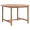 Table de salle à manger de jardin Ø110x75cm Bois massif de teck Cette table de salle à manger de jardin classique en bois avec une finition à base d'eau ajoute une touche de charme naturel à votre cuisine, jardin ou patio. Fabriquée en bois dur de teck extrêmement durable, cette pièce de meuble en teck a été chevronnée, séchée au four puis finement poncée pour lui donner un aspect très lisse. Le bois de teck est connu pour sa résistance exceptionnelle aux intempéries, ce qui le rend bien plus adapté aux meubles de jardin que tout autre type de bois. Le bois de teck est le choix idéal si vous souhaitez acheter une pièce de meubles de jardin durable. Une belle finition à base d'eau est appliquée pour donner au bois une couleur chaude. Grâce au dessus de table extra épais (2,2 cm) et aux grands pieds (4x4 cm), cette table en bois solide est très durable et peut accueillir confortablement vos invités. Avec son aspect classique, vous pouvez placer cette pièce partout autour de votre maison - à l'intérieur ou à l'extérieur ! Remarque : afin de prolonger la durée de vie des meubles d'extérieur, nous vous recommandons de les protéger avec une housse imperméable.