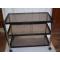 1 table de salon 3 étagées en verre support métal cuivré sur roulettes L 100 H 68 l 48 cm