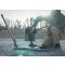 L'ensemble comprend une table et un siège en plastique, associés à une structure reposant sur des pieds en aluminium. Ce choix de matériaux permet de maintenir le poids total sous la barre des 15 kg tout en assurant une bonne stabilité lors de l'utilisation.
