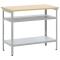 Table de travail Gris 100 x 55 x 85 cm Acier enduit de poudreCette table de travail industrielle à hauteur réglable est faite pour moderniser votre espace de boulot avec son design industriel stylé et ses fonctionnalités super pratiques. Elle allie parfaitement style et usage, que vous bricoliez, dessiniez ou rangiez vos outils dans l'atelier. Ses étagères en métal robustes vous offrent tout l'espace de rangement dont vous avez besoin, et les pieds réglables s'ajustent pour s'adapter à votre manière de travailler, vous garantissant confort et facilité d'utilisation. Matériaux : Cette table de travail est faite d'acier revêtu de poudre, ce qui assure une durabilité et une belle finition. La surface en bois d'ingénierie fait un joli duo avec le métal, offrant une belle harmonie entre style et fonctionnalité, résistante aux rayures et prête à durer longtemps. Composants inclus : Avec ses étagères en métal gris, cette table vous offre un espace flexible pour ranger outils et fournitures efficacement. Chaque étagère est conçue pour être stable et solide, répondant aux besoins des pros tout en gardant style et praticité. Caractéristiques/fonction/design : La table est réglable en hauteur, vous permettant d'ajuster votre espace de travail selon vos projets ou préférences. Avec plein d'espace de rangement, elle aide à garder les outils bien organisés, ce qui booste votre productivité. Usages recommandés : Super pour les ateliers, garages et studios, cette table s'intègre facilement aux environnements qui demandent de l'ordre et de l'efficacité. Son style industriel embellit n'importe quel espace, rendant votre routine plus agréable, que vous soyez amateur, bricoleur ou professionnel. Entretien : Gardez cette table impeccable en l'essuyant juste avec un chiffon sec, sans produits chimiques qui pourraient abîmer sa finition. Un entretien léger lui garantit de rester un allié pratique pour votre espace de travail.