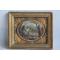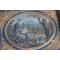 Ravissant médaillon en métal repoussé et peint représentant une bergère lisant, gardant ses moutons entouré d'angelots en papier repoussé et doré cadre en bois postérieur dimensions de la scène : 10 x 7,5 cm d'époque début XIXe siècle