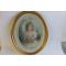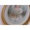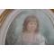 Tableau pastel petite fille au panier de fleurs d'époque XIXe siècle encadré sous verre, cadre en bois doré à la feuille d'or (fentes voir photos) pastel en bon état