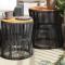 Tables d'appoint de jardin 2 pcs dessus en bois noir poly rotinRassemblez-vous autour de ces élégantes tables d'appoint de jardin pour savourer un café ou discuter avec votre famille et vos amis dans le jardin, dans la cour ou sur la terrasse ! Matériau durable : la résine tressée, également connue sous le nom de poly rotin, est un matériau synthétique solide et nécessitant peu d'entretien qui ressemble au rotin naturel. Il est léger, facile à nettoyer et couramment utilisé pour les meubles d'extérieur en raison de sa durabilité et de ses propriétés de résistance aux intempéries. Dessus en bois : le dessus de la table d'extérieur est fabriqué en bois d'acacia robuste et durable, ce qui le rend facile à nettoyer avec un chiffon humide et ajoute une touche d'élégance à votre espace extérieur. Cadre robuste et stable : le cadre en acier enduit de poudre assure la solidité et la stabilité de la table d'appoint pour une utilisation quotidienne à l'extérieur. Gain de place : la petite table d'appoint peut être placée à l'intérieur de la grande pour économiser de l'espace. Bon à savoir : Pour que vos meubles d'extérieur restent beaux, nous vous recommandons de les protéger avec une housse imperméable. ,
