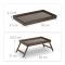 Détails sur la tablette de lit pliante Dimensions pliée H x L x P : env. 4,5 x 50 x 31 cm Dimensions dépliée H x L x P : env. 22,5 x 64 x 31 cm En bambou et fond en bois MDF Charge supportée : env. 5 kg Pèse env. 1 kg En brun foncé