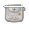 Les bordures ovales en galon bleu clair confèrent une touche élégante et raffinée à l'ensemble, tandis que le dos en soie synthétique bleu clair est doté d'une poche pratique pour y ranger des gants ou de la monnaie, offrant ainsi à la fois fonctionnalité et confort.