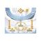 Le Tablier de Vénérable Maître du Rite Français Traditionnel 1801 est une pièce emblématique, imprégnée d'histoire et de symbolisme. Héritier direct des premiers tabliers maçonniques utilisés en France au XVIIIe siècle, il perpétue la tradition avec des ornements riches de sens. Ce modèle, conçu avec un ruban plissé bleu et des broderies soignées, reprend les symboles fondamentaux de la maçonnerie spéculative, faisant écho aux valeurs de sagesse, de force et de beauté.