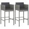 Tabourets de bar lot de 2 avec coussins gris résine tresséeCes tabourets de bar vous offrent un moment de détente agréable avec votre famille et vos amis. La chaise est fabriquée en résine tressée, robuste, résistante aux intempéries et facile à nettoyer. Elle est donc parfaite pour une utilisation quotidienne dehors. Soutenu par un cadre en acier enduit de poudre, ce tabouret de jardin est stable et robuste. Grâce à sa construction légère, le tabouret de comptoir peut être déplacé facilement pour s'adapter à d'autres configurations. Maximum 110 kg par siège. Soyez conscient du risque de feux ouverts et d'autres sources de forte chaleur à proximité du produit.