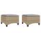 Tabourets jardin coussins 2 pcs beige 55x55x36cm résine tresséeDétendez-vous et profitez de l'extérieur sur ces confortables tabourets de jardin ! Matériau durable : la résine tressée, également connue sous le nom de poly rotin, est un matériau synthétique solide et nécessitant peu d'entretien qui ressemble au rotin naturel. Elle est légère, facile à nettoyer et couramment utilisée pour les meubles d'extérieur en raison de sa durabilité et de ses propriétés de résistance aux intempéries.Cadre robuste et stable : le cadre en acier enduit de poudre est solide, stable, durable et résistant à la corrosion et aux intempéries, ce qui garantit des performances durables.Expérience d'assise confortable : ce mobilier d'extérieur, doté de coussins épais, offre une expérience d'assise confortable.Housse amovible et lavable : ces coussins de siège sont dotés de housses amovibles pour un lavage et un entretien faciles.Nombreuses utilisations : le tabouret est polyvalent, il peut servir de repose-pieds confortable lorsque vous vous prélassez sur le canapé ou de siège supplémentaire dans votre jardin. Il peut également être utilisé comme table lorsque vous retirez le coussin d'assise. Bon à savoir :Pour que vos meubles d'extérieur restent beaux, nous vous recommandons de les protéger avec une housse imperméable.