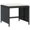 Tabourets de jardin et coussins lot de 4 noir 41x41x36 cm rotinDétendez-vous et profitez de l'extérieur sur ces confortables tabourets de jardin ! Matériau durable : la résine tressée, également connue sous le nom de poly rotin, est un matériau synthétique solide et nécessitant peu d'entretien qui ressemble au rotin naturel. Il est léger, facile à nettoyer et couramment utilisé pour les meubles d'extérieur en raison de sa durabilité et de ses propriétés de résistance aux intempéries.Expérience d'assise confortable : ce mobilier d'extérieur, doté de coussins épais, offre une expérience d'assise confortable.Housse amovible et lavable : ces coussins de siège sont dotés de housses amovibles pour un lavage et un entretien faciles. Cadre robuste et stable : le cadre en acier enduit de poudre assure la solidité et la stabilité du meuble de jardin pour une utilisation quotidienne à l'extérieur. Bon à savoir :Pour que vos meubles d'extérieur restent beaux, nous vous recommandons de les protéger avec une housse imperméable. Maximum 110 kg par siège.