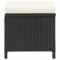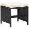 Tabourets de jardin lot de 4 avec coussins Résine tressée NoirCet ensemble de tabourets de jardin complète parfaitement votre jardin, votre terrasse et votre espace de vie extérieur. Avec un cadre en acier robuste recouvert de résine tressée résistante aux intempéries, le repose-pied est résistant à la rouille et à la moisissure, offrant des années de détente de qualité. Le coussin d'assise bien rembourré offre un confort optimal. Remarque : afin de prolonger la durée de vie de vos meubles d'extérieur, nous vous recommandons de les nettoyer régulièrement et de ne pas les laisser à l'extérieur sans protection inutilement. Nettoyage : Utiliser une solution savonneuse douce. Stockage : si possible, stockez dans un endroit frais et sec à l'intérieur. Si le produit est stocké à l'extérieur, protégez-le avec une housse imperméable. Essuyez et séchez l'excès d'eau ou de neige des surfaces planes après la pluie ou une chute de neige. Permettez une circulation d'air suffisante afin d'éviter les dommages liés à l'humidité. Maximum 110 kg par siège. Soyez conscient du risque de feux ouverts et d'autres sources de forte chaleur à proximité du produit. ,
