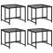 Tabourets de jardin lot de 4 noir résine tresséeDétendez-vous et profitez de l'extérieur sur ces confortables tabourets de jardin ! Matériau durable : la résine tressée, également connue sous le nom de poly rotin, est un matériau synthétique solide et nécessitant peu d'entretien qui ressemble au rotin naturel. Il est léger, facile à nettoyer et couramment utilisé pour les meubles d'extérieur en raison de sa durabilité et de ses propriétés de résistance aux intempéries.Fonctionnalité polyvalente : le tabouret d'extérieur est polyvalent, servant de repose-pieds confortable lorsque vous vous prélassez sur le canapé ou de siège supplémentaire dans votre jardin.Cadre robuste et stable : le cadre en acier enduit de poudre assure la solidité et la stabilité du meuble de jardin pour une utilisation quotidienne à l'extérieur. Bon à savoir :Pour que vos meubles d'extérieur restent beaux, nous vous recommandons de les protéger avec une housse imperméable. Maximum 110 kg par siège.