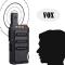 Nos mains sont souvent occupées à d’autres choses. Nous ne pouvons pas libérer nos mains pour appuyer sur le bouton PTT. À ce moment-là, la fonction VOX peut aider à résoudre ce problème.Vous n’avez pas besoin d’appuyer sur le bouton PTT, il suffit de parler au microphone de RT619, et puis RT619 passera automatiquement votre voix à votre partenaire, relâchez les mains.