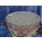 Joli caisse de tambour entièrement recouvert de cuir encore très joli, peau en bonne état aucune coupure, lanière en cuir pour passer sur l'épaule entière. D. 28 X 24 cm