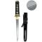 Le Tanto, sabre court japonais, est une arme emblématique des samouraïs, utilisée principalement comme un poignard ou une arme de défense rapprochée. Sa conception compacte et tranchante en a fait un outil redoutable, apprécié non seulement pour sa puissance mais aussi pour la finesse de son artisanat. Ce Tanto à lame damassée incarne l'élégance de cette tradition, avec une lame conçue non seulement pour la décoration, mais aussi conseillée pour la coupe.