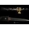 Fourreau laqué avec un moineau sur une branche et un papillon sur la poignée , il y a la signature du maitre laqueur en kanji (ecriture chinoise ) ainsi qu'un kaikan (signature du maitre ) .