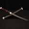 Cela commence par son Tsuka qui repose sur une base bois et sur laquelle vous retrouvez un cordage synthétique de couleur noir qui recouvre un simili cuir teinté rouge à effet peau de raie.