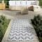 Tapis d'extérieur ARAKIL gris 80 x 150 cm PPCe tapis d'extérieur tendance est un excellent supplément décoratif à votre espace de vie extérieur ! Placez-le dans votre zone de sièges sur votre balcon, terrasse et patio pour la rendre instantanément plus accueillante. Durable et résistant aux UV : fabriqué en polypropylène (PP), ce tapis est tissé serré pour plus de durabilité, de portabilité et de faible entretien. Et il est résistant aux UV, ce qui l'empêche de se décolorer ou de subir d'autres dommages causés par le soleil.Design réversible : conçu pour être utilisé des deux côtés, ce tapis de jardin offre deux options qui vous permettent d'assortir le décor à votre goût. Lorsqu'un côté est taché ou que vous vous ennuyez avec le motif, vous pouvez remplacer l'autre côté pour donner au sol un aspect nouveau.Facile à nettoyer : ce tapis d'extérieur est facile à nettoyer. Il suffit de le secouer et de l'essuyer avec un chiffon humide, ou de le rincer avec un tuyau d'arrosage et de le sécher à l'air libre.Portable et facile à ranger : grâce à sa légèreté et à ses coutures au milieu, vous pouvez plier ou déplier librement le tapis dans une forme idéale pour le transporter et le ranger facilement lorsqu'il n'est pas utilisé.Applications larges : ce tapis convient à une utilisation intérieure et extérieure, y compris la terrasse, le patio, le balcon, le jardin, la terrasse, etc. Bon à savoir :Pour une durabilité et une beauté optimales, nous vous suggérons de laver votre tapis d'extérieur à la main à température ambiante.
