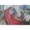 Tapisserie d'art populaire signée A. DUMONT, 1876 partie centrale en tapisserie peinte en souvenir d'Angèle Dumont, qui a fait cette tapisserie lorsqu'elle était au pensionnat des religieuses de Clermont cadre à la feuille d'or d'origine bon état
