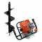 La tarière est équipée d'un moteur de 3 CV d'une cylindrée de 63,3ccm qui peut atteindre jusqu'à 183 tours par minute.