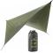 C'est un tarp de 240 cm de long et 240 cm de large. C'est donc un tarp de bivouac carré. Il peut abriter en mode camping ou en mode bivouac entre 1 et 3 personnes suivant votre installation. Rangé, on obtient un volume plié très intéressant : 22 x 12 cm. Son poids est de 580 grammes avec la housse. Le Rain Tarp Ferrino est vendu avec les piquets, les cordelettes réglables, un kit de réparation et la housse de protection. En plus d'une utilisation classique, il peut également surprotéger une tente ou être utilisé comme toit de hamac. Coloris : vert.