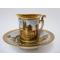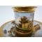 Ancienne tasse en porcelaine à décor polychrome et or D'époque début du XIXe siècle Diamètre Tasses : 6,5 cm Diamètre Sous Tasses : 12,9 cm Bon état (sauf une petite egrenure sous la sous-tasse voir photo).