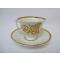 Ancienne tasse en porcelaine Ø tasse : 11,3 cm - sous tasse : 17,4 cm décor a l'or (bon état) lettrages: EDOUARD LECLERCQ (en partie effacé) bon état (un tout petit cheveu 1,5cm, sans importance la tasse sonne bien)