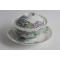 Ancienne tasse à thé couverte et sous-tasse en porcelaine très fine dite coquille d'oeuf