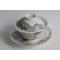 Ancienne tasse à thé couverte et sous-tasse en porcelaine très fine dite coquille d'oeuf