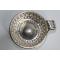Rare tastevin en argent massif d'époque XVIIIe siècle anse à enroulement cannelé provenance non identifiée 4 poinçons à l'intérieur de la anse, voir photos gravé G. Jaron de Mezel bon état