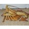 Langouste de Bretagne naturalisée vers 1935/40, pêchée sur bâteau chalutier Ker Ysa sur socle en bois forme d'ancre de marine. Qualité muséale, longueur 50cm