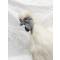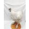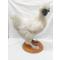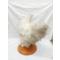 Taxidermie d'un coq de soie blanc, faite par un professionnel sur socle de bois. La poule est un mâle plumage blanc et visage noir et bleu