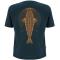 Sérigraphie en une seule couleur sur un tissu bleu foncé de 140 g/m² avec des détails de languettes latérales tissées.
