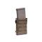 Une pochette à une chambre de la société Templars Gear, conçue pour contenir presque tous les chargeurs de type fusil comme AK / AR15 / M4 / M16 ou similaire. Simple, la construction à une chambre est faite d'un laminé Cordura 500 très résistant avec traitement IRR et cadre en kydex. Une conception sophistiquée et l'utilisation de matériaux de haute qualité garantissent à la fois la résistance mécanique et le confort d'utilisation. Cette pochette CQB permet à l'utilisateur d'accéder rapidement aux magasins afin de les recharger en toute hâte. Un élément très important de la poche est le système de régulation qui empêche la perte accidentelle des magazines. Ce système est basé sur un cordon amortisseur réglable et un coussin antidérapant cousu à l'intérieur. La poche frontale comporte deux rangées de fentes découpées au laser compatibles avec MOLLE / PLAS qui permettent de fixer une poche ou un sac supplémentaire. Le système de fixation de la poche est basé sur deux sangles, permettant de l'attacher sur le gilet ou la ceinture MOLLE.