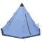 Tente pour 4 personnes BleuCette tente est parfaite pour toutes vos aventures de camping ! Elle a un intérieur confortable, adaptée au camping en plein air, aux festivals et aux vacances dans un campement. Le toit avec dessus supplémentaire et le plancher en PE vous assureront une accommodation propre et au sec. La structure du cadre en fer contribue à sa robustesse et à sa durabilité. Cette tente a deux fenêtres avec des moustiquaires en filet permettant une meilleure circulation de l'air et vous offrant des nuits d'été sans insectes. Cette tente de camping pour 4 personnes peut être rangée soigneusement dans le sac de transport inclus pour faciliter le rangement et le transport. Cette tente est un excellent choix pour ceux qui aiment le style Tipi. Remarque :La tente est conçue pour une utilisation peu fréquente et de courte durée (niveau de performance 1). Bien que résistantes à la pluie, ces tentes doivent être utilisées principalement par beau temps. Ce produit ne convient pas aux intempéries telles que le vent fort, les chutes de neige et les conditions météorologiques extrêmes.