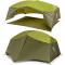 En optant pour la tente Nemo Aurora 2, on s'assure d'office un beau volume intérieur pour 2 personnes et pour le matériel de randonnée ou de bivouac : on a une chambre avec un bel espace et deux absides de rangement sur les côtés de la tente. Il en découle un certain confort et c'est plutôt rare pour une tente légère, compacte et facile à transporter. L'architecture singulière de la tente Nemo Aurora 2 explique en grande partie les qualités énoncées : la forme spécifique des arceaux donne immédiatement plus de volume intérieur pour un vrai gain d'espace, tandis que les 2 absides sur les côtés de la tente constituent 2 zones de rangement distinctes pour les chaussures, les sacs à dos et les équipements de trekking ou de camping. Et pour chaque achat d'une tente Aurora 2, la marque Nemo offre automatiquement un tapis de protection pour mieux protéger la base de votre tente, notamment en cas de terrain difficile.