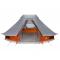 Tente Tipi Grise et Orange Imperméable pour 6 Personnes.Cette tente Tipi de camping étanche est exactement ce qu'il te faut si tu adores être dehors tout en restant au sec. Avec sa forme conique stylée et ses couleurs vives, elle attire l'attention dans n'importe quel camping, te donnant à toi et à tes proches un bel espace. Avec un tissu imperméable, soit sûr que ton expérience en extérieur reste confortable et au sec, même si la pluie arrive à l'improviste. Le design respirant permet une bonne circulation de l'air, réduisant la condensation et rendant l'intérieur agréable. Elle peut accueillir jusqu'à 6 personnes, parfaite pour des sorties en famille ou des camping entre amis, offrant vraiment beaucoup d'espace. Construite avec des matériaux résistants comme le taffetas de polyester et des parties en plastique solides, cette tente résiste à différents types de météo, te fournissant un abri solide. Facile à monter et démonter, il te suffit de 4 personnes et d'un simple marteau, ce qui rend ton expérience de camping simple et rapide. Avertissement Gardez toutes les sources de flammes et de chaleur à l>écart de ce tissu.