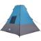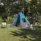 Tente Tipi avec toit Bleu 383 x 338 x 217 cm taffetasLa tente familiale Tipi est faite pour les aventuriers qui veulent simplicité et fonctionnalité. Ce coin moderne est parfait pour le jardin ou la terrasse, avec des lignes nettes et peu de décorations, mariant style pratique et esthétique. Idéale pour des sorties en famille, elle se monte facilement dans des campings ou lors de week-ends, offrant un espace confortable à ses utilisateurs. Matériaux durables : Fait en taffetas de qualité, super résistant et flexible. Ce matériau prolonge la vie de la tente et la protège des caprices de la météo. Grâce aux propriétés coupe-vent et imperméables, vous restez au sec, même sous la pluie. C'est l'allié parfait pour toutes vos aventures de camping. Ensemble de composants complet : Tout le nécessaire est inclus, avec un mât en fibre de verre (93 cm), deux poteaux en acier (288 cm), dix sardines et quatre cordes de soutien, pour une installation stable. Chaque pièce a été choisie pour sa solidité, rendant le montage facile et garantissant que la tente reste bien en place. Fonctionnalités pratiques : Avec un port E pour l'électricité et un crochet de suspension pour garder vos affaires à portée, ça rend la tente super fonctionnelle. Ces options permettent de l'adapter facilement et d'organiser l'espace de manière pratique. La fermeture éclair facilite l'entrée et la sortie. Espacement optimal : Ses dimensions généreuses de 383 x 338 x 217 cm créent un grand espace pour se relaxer ou faire des activités, parfait pour six personnes. Profitez d'un intérieur spacieux pour dormir, se reposer ou ranger votre matériel de camping, assurant le confort de tous pendant vos aventures. Assemblage facile : Installée sans effort à deux avec un maillet, pour passer moins de temps à monter et plus de temps à profiter. Le sac de transport inclus rend le rangement et le transport faciles, simplifiant vos voyages et le stockage pour les campeurs. Avertissement Gardez toutes les sources de flammes et de chaleur à l>écart de ce tissu.
