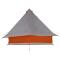 Tente Tipi avec toit Gris et orange 358 x 296 x 258 cm taffetasCette tente tipi familiale modernise le camping traditionnel. Avec un espace généreux et un design d'une seule pièce, elle est parfaite pour les familles ou les groupes. Bien pensée pour l'extérieur, que ce soit dans un jardin ou sur une grande terrasse, elle combine praticité et style moderne. Son intérieur spacieux et son matériau léger en font un super choix pour les campeurs qui veulent du confort et de la fonctionnalité. Matériau Taffetas de Qualité Fabriquée en taffetas résistant, cette tente est solide et peut affronter le vent, parfaite pour toutes sortes de temps. Le tissu est doux et durable, garantissant une expérience de camping agréable, même sous le soleil. Composants Complets Cette tente vient avec tout le nécessaire : 1 tente principale, 1 poteau de 258 cm, 2 poteaux de 188 cm, plein de cordes de hauban de différentes tailles, des piquets et un sac de transport pratique. Avec tout ça, monter et démonter devient un jeu d'enfant. Fonctionnalités Pratiques Avec son port E et son crochet suspendu, cette tente répond aux besoins modernes de connectivité et d'organisation. La fermeture éclair permet un accès facile et sûr, et les cordes de hauban réglables ajoutent une stabilité supplémentaire. Utilisations Polyvalentes Parfaite pour le camping d'été ou pour profiter du jardin, cette tente tipi est l'option idéale pour de chouettes moments en famille ou des retraites paisibles en pleine nature. Son design est parfait pour les campeurs qui veulent un équipement d'extérieur polyvalent. Instructions d'Entretien Pour garder votre tente optimale, assurez-vous qu'elle soit bien sèche avant de la ranger. Utilisez des produits doux pour les taches tenaces et nettoyez-la rapidement après usage. Rangez-la toujours dans son sac de transport pour éviter l'usure et qu'elle soit prête pour vos prochaines aventures. Avertissement Gardez toutes les sources de flammes et de chaleur à l>écart de ce tissu.