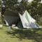 Tente Tipi avec toit Vert 510 x 690 x 330 cm taffetasLa tente Family Tipi est faite pour le camping en famille pendant les journées d'été. Elle offre beaucoup d'espace et est super facile à monter. Avec son design moderne et épuré mais sans fioritures, elle se fond parfaitement dans n'importe quel jardin ou terrasse, hello relaxation au soleil ! Imaginez-vous passer un après-midi chaud, la tente tipi dressée comme un petit cocon en pleine nature, idéale pour une pause loin du quotidien. Design moderne : Avec ses lignes épurées et son look minimaliste, cette tente Family Tipi est parfaite pour se détendre en plein air. Elle a une structure fonctionnelle sans détails superflus, ce qui lui permet de s'intégrer facilement dans n'importe quel jardin ou terrasse. Tissu Taffeta coupe-vent : La tente est faite en taffetas résistant, pour vous protéger des vents frais à votre campement. Ce matériau a été choisi pour sa durabilité, vous garantissant une belle tenue dans presque toutes les conditions. E-Port et crochet suspendu : Restez connecté même en pleine nature ! L'E-port permet de brancher facilement de l'électricité dans la tente, parfait pour recharger vos appareils en camping. Le crochet suspendu est aussi là pour accrocher lampes et accessoires, rendant votre séjour encore plus agréable. Intérieur spacieux : Avec son design qui privilégie l'espace, la tente peut accueillit confortablement les familles ou de petits groupes. Une vraie invitation à se rassembler, partager un repas ou tout simplement se poser dans une atmosphère agréable. Fonctionnalités de montage facile : Avec ses poteaux en acier et ses cordes, la tente se monte facilement avec juste un maillet et quatre personnes. Pas besoin de sacrifier la solidité pour le côté pratique, c'est l'assurance d'une installation stable et confortable pour vos weekends en famille ! Avertissement Gardez toutes les sources de flammes et de chaleur à l>écart de ce tissu.