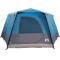 Tente cabine 7 personnes avec toit Bleu 400 x 350 x 212 cmLa tente familiale est parfaite pour ceux qui cherchent un abri confortable et pratique en camping. Avec son design moderne, elle offre beaucoup d'espace pour la famille ou des amis. Sa construction robuste et bien pensée assure un refuge sûr dans toutes les conditions, promettant une expérience mémorable. Matériaux robustes : En polyester 185T avec un revêtement PU, cette tente est faite pour affronter le plein air. Son taffetas offre une texture lisse et élégante. Elle est résistante à l'eau, au vent et aux UV, vous protégeant bien des caprices de la météo. Kits de montage complets : La tente vient avec tout le nécessaire : poteaux, cordes de guy et piquets pour bien tenir. Facile à monter et à déplacer grâce au sac de transport, elle est parfaite pour vos aventures en camping. Éléments de design fonctionnels : Avec une fenêtre de ventilation et une fermeture à glissière, elle est conçue pour être simple à utiliser. Un port électrique et des poches de rangement ajoutent au confort et améliorent l'expérience de camping. Utilisation polyvalente : Parfaite pour l'été, cette tente convient à tous types d'environnement, des jardins aux terrains ouverts. Elle est idéale pour toutes vos activités, que ce soit des réunions décontractées en famille ou des expéditions en plein air. Entretien minimaliste : Un simple coup de chiffon humide suffit pour la nettoyer. Cela garantit qu'elle garde son état pendant longtemps. Avertissement Gardez toutes les sources de flammes et de chaleur à l>écart de ce tissu.