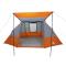 Tente de camping Gris et orange 482 x 360 x 227 cm taffetasCette tente de camping est un vrai bijou, conçue pour rendre vos aventures outdoors super simples, tout en offrant un maximum de confort. Faite pour ceux qui adorent passer du temps dehors, elle crée un vrai petit chez-soi où que vous soyez. Son grand intérieur peut facilement accueillir votre bande ou votre famille. Sa couleur discrète se fond dans la nature tout en vous protégeant et vous tenant abrité. Que ce soit dans le jardin ou au milieu des bois, cette tente vous offre un endroit tranquille et agréable. Construction en tissu durable Fabriquée en taffetas, ce matériau est solide et résistant, elle résiste à l'usure tout en étant parfaitement étanche. Ce tissu garantit que votre tente tiendra le coup face aux intempéries et durera au fil du temps, vous offrant une protection fiable toutes les années. Composants fonctionnels Votre installation sera complète avec 4 mâts en acier de 173 cm et 2 de 204 cm, 4 cordes de 300 cm et 2 de 350 cm, 14 piquets, et un sac de transport pratique. Chaque élément est conçu pour améliorer la stabilité et le transport, et la fermeture éclair rend l'entrée et la sortie super faciles. Conception riche en caractéristiques Cette tente a une prise électrique pour un accès facile à l'électricité et un crochet pour suspendre vos lumières. La porte zippée permet d'entrer et sortir facilement, et les trois fenêtres laissent entrer la lumière naturelle, soulignant les avantages de son design moderne. Application polyvalente Idéale pour le camping dans le jardin, sur une terrasse ou lors d'une sortie en pleine nature, cette tente s'adapte à tous les environnements. Son grand intérieur est parfait pour les sorties en famille ou les aventures tranquilles, faisant d'elle un endroit parfait pour vos escapades. Entretien et maintenance Pour qu'elle reste en super état, un simple coup de chiffon humide de temps en temps fera l'affaire. Gardez-la dans un endroit sec pour que ses matériaux restent en bon état, tout en accueillant avec grâce chaque légèreté de la nature. Avertissement Gardez toutes les sources de flammes et de chaleur à l>écart de ce tissu.