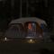 Tente familiale avec LED 9 personnes à dégagement rapideCette tente familiale au look moderne vous protège des intempéries et offre un endroit confortable pour des aventures partout. Conception imperméable à l'eau tout autour : cette tente de camping, fabriquée en polyester avec un revêtement PU, est imperméable et résistante au vent. Les coutures étanches empêchent efficacement l'infiltration de l'eau de pluie, tandis que le tapis de sol robuste contribue à maintenir l'intérieur sec et confortable.Système de dégagement rapide : installez la tente sans effort grâce au système de dégagement rapide ! Posez la tente, étendez les poteaux pré-assemblés jusqu'à ce qu'ils s'enclenchent, et le tour est joué !Éclairage LED : cette tente dispose de lumières LED sur les poteaux du plafond avec trois modes d'éclairage : lumière forte, lumière faible et lumière de nuit. Elles peuvent être alimentées par une banque d'alimentation ou des batteries 4D (toutes deux non incluses). Le tissu diffusant la lumière assure un éclairage homogène dans toute la tente, créant ainsi un environnement confortable et bien éclairé pour toutes vos aventures de camping.Accès pratique au cordon électrique : le E-port vous permet de connecter facilement une rallonge à votre tente à partir d'une source d'alimentation externe.Double-toit amovible : le double toit amovible peut être fixé au sommet de la tente pour une protection contre les intempéries et plus d'intimité. Attention :Tenir toutes les flammes et les sources de chaleur loin du tissu de ce produit. Le produit n'est pas adapté aux conditions météorologiques telles que le vent fort, les chutes de neige et les conditions météorologiques extrêmes. Ce produit est alimenté par un courant continu de 5 V, mais la source d'alimentation USB certifiée de 5 V n'est pas incluse. Une tension plus élevée peut entraîner une surchauffe et endommager l'appareil, ainsi qu'un risque potentiel de surchauffe et d'incendie.