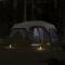 Tente familiale avec LED 9 personnes libération rapideCette tente familiale au look moderne vous protège des intempéries et offre un endroit confortable pour des aventures partout. Conception imperméable à l'eau tout autour : cette tente de camping, fabriquée en polyester avec un revêtement PU, est imperméable et résistante au vent. Les coutures étanches empêchent efficacement l'infiltration de l'eau de pluie, tandis que le tapis de sol robuste contribue à maintenir l'intérieur sec et confortable.Système de dégagement rapide : installez la tente sans effort grâce au système de dégagement rapide ! Posez la tente, étendez les poteaux pré-assemblés jusqu'à ce qu'ils s'enclenchent, et le tour est joué !Éclairage LED : cette tente dispose de lumières LED sur les poteaux du plafond avec trois modes d'éclairage : lumière forte, lumière faible et lumière de nuit. Elles peuvent être alimentées par une banque d'alimentation ou des batteries 4D (toutes deux non incluses). Le tissu diffusant la lumière assure un éclairage homogène dans toute la tente, créant ainsi un environnement confortable et bien éclairé pour toutes vos aventures de camping.Accès pratique au cordon électrique : le E-port vous permet de connecter facilement une rallonge à votre tente à partir d'une source d'alimentation externe.Double-toit amovible : le double toit amovible peut être fixé au sommet de la tente pour une protection contre les intempéries et plus d'intimité. Attention :Tenir toutes les flammes et les sources de chaleur loin du tissu de ce produit. Le produit n'est pas adapté aux conditions météorologiques telles que le vent fort, les chutes de neige et les conditions météorologiques extrêmes. Ce produit est alimenté par un courant continu de 5 V, mais la source d'alimentation USB certifiée de 5 V n'est pas incluse. Une tension plus élevée peut entraîner une surchauffe et endommager l'appareil, ainsi qu'un risque potentiel de surchauffe et d'incendie.