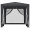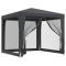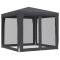 Tente de fête 4 parois latérales en maille Anthracite 2.5x2.5 mCette tente de fête super cool, avec un cadre en fer robuste, un toit résistant à l'eau et quatre parois latérales en maille, est un abri idéal contre le soleil. Matériau de qualité supérieure : cette tonnelle est fabriquée en polyéthylène haute densité (PEHD) qui vous protège de la lumière directe du soleil et permet suffisamment de vent. La PEHD est spécialement traitée, elle est donc également résistante à l'eau.Cadre en fer : le cadre en fer de cette tonnelle assure robustesse et stabilité.Design pratique : le chapiteau a quatre parois latérales en maille, qui vous protègent des insectes embêtants. Et l'une des parois latérales a une fermeture éclair pour l'entrée et l'accès facile.Larges applications : cette tente d'événements est un choix idéal pour un large éventail d'événements en plein air, tels que des spectacles, des mariages, des fêtes, des barbecues, des festivals, etc. Remarque :Ce produit ne doit JAMAIS être utilisé par mauvais temps, tel que vent fort, pluie abondante, neige, tempête, etc.Chaque produit est livré avec un manuel de montage dans la boîte pour un montage facile. Certaines pièces peuvent présenter des arêtes vives. Portez des gants de protection si nécessaire pour éviter les blessures. Tenez les enfants et les animaux à l'écart de la zone de montage. N'installez pas votre tente sous les arbres en raison du risque de foudre ou de rupture accidentelle des branches d'arbres en cas de conditions météorologiques extrêmes. Il est recommandé de fixer l'abri à un objet inamovible ou au sol. Ne pas stocker ou utiliser d'objets chauds dans l'abri, tels que des barbecues, du matériel de soudage et des chalumeaux, afin d'éviter tout risque d'incendie.