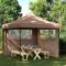Tente de fête Marron 292 x 292 x 315 cm Tissu OxfordCette tente de fête moderne et versatile est parfaite pour les événements en extérieur. Elle offre un grand espace abrité pour des occasions comme les mariages, fêtes et réunions de famille. Son design contemporain, alliant simplicité et fonctionnalité, fait qu'elle s'intègre à tous les cadres extérieurs. Installe-la dans ton jardin ou sur ta terrasse pour un coin confort pour chiller, dîner ou profiter du paysage. La couleur blanche apporte une ambiance paisible, que ce soit de jour ou de nuit. Matériaux résistants aux intempéries : Toit en tissu Oxford avec revêtement PVC pour une protection top contre le mauvais temps. Résistante aux UV et à l'eau, ta tente garde tes invités au frais qu'il pleuve ou qu'il fasse beau - parfaite tout au long de l'année. Composants inclus : La tente est livrée avec 4 cordes solides de 3,5 mètres et 8 piquets pour un montage sécurisé. Ces éléments renforcent sa stabilité, surtout quand le temps change, t'assurant une tranquillité d'esprit pendant les événements. Caractéristiques fonctionnelles : Son design pop-up rend le montage et le démontage super rapides, s'adaptant aux besoins d'imprévus ou de fêtes planifiées. Son cadre pliable permet un transport et un rangement aisés, parfait pour les hôtes qui organisent souvent des événements. Utilisations recommandées : Idéale pour les événements d'été dans les jardins ou espaces ouverts, cette tente est super polyvalente, offrant un abri pour les anniversaires, barbecues ou fêtes décontractées. Sa taille convient parfaitement pour un espace chaleureux, que ce soit pour divertir ou se détendre. Entretien : Entretiens ta tente en l'essuyant avec un chiffon humide, ça prolonge son apparence et sa durabilité. C'est simple et ça garantit qu'elle reste une belle addition à tes espaces extérieurs, prête pour chaque occasion. Bon à savoir : Ce produit n'est pas adapté à une utilisation par mauvais temps, tel que vent fort, fortes pluies, neige, tempête, etc. Ce produit ne convient pas à une utilisation comme abri pour voiture
