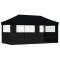 Tente de fête Noir 292 x 580 x 315 cm Tissu OxfordCette tente moderne est votre solution extérieure pour plein d'événements comme des mariages, barbecues, festivals ou juste des soirées chill à la maison. Son design pop-up rend le montage super facile, avec des lignes simples et sans chichi, idéale pour ceux qui veulent du pratique. Son style chic apportera vraiment un plus à votre jardin ou terrasse. Imaginez-vous en train d'organiser une super fête dans le jardin ou un dîner en famille tranquille sous cette jolie tente blanche. Matériaux de qualité : La tente est équipée d'un solide cadre en acier, offrant stabilité et durabilité. Son tissu oxford résiste aux intempéries, faisant d'elle un excellent choix pour vos événements en extérieur. Fonctionnalités pratiques : Sa conception pliable facilite le transport et le rangement. Avec 6 cordes et 12 piquets fournis, elle reste bien en place, même par un petit vent. Parfaite pour l'extérieur : Elle assure une couverture totalement étanche et est protégée des UV, garantissant un espace safe dans votre jardin ou sur votre terrasse, pour que vos invités soient à l'abri de la pluie ou du soleil. Utilisations multiples : Que ce soit pour des fêtes, mariages ou barbecues, c'est clairement le choix idéal pour toutes vos réunions en plein air. Elle s'intègre facilement dans vos jardins et terrasses, pour le confort de vos invités. Entretien facile : Pensez à la simplicité, elle se nettoie juste avec un chiffon humide. Avec ça, elle garde son look et dure plus longtemps à chaque saison. Bon à savoir : Ce produit n'est pas adapté à une utilisation par mauvais temps, tel que vent fort, fortes pluies, neige, tempête, etc. Ce produit ne convient pas à une utilisation comme abri pour voiture