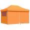 Tente de fête Orange 279 x 410 x 315 cm Tissu OxfordCette tente de fête moderne est l'abri parfait pour vos célébrations, rassemblements et événements. Avec son style simple mais efficace, c'est le choix idéal pour un look minimaliste. Pensée avec soin, elle offre un grand auvent pour vos moments en extérieur, garantissant ombre et confort. Ses lignes épurées, sans fioritures, vont parfaitement dans votre jardin ou sur votre terrasse, créant une ambiance accueillante tout en protégeant contre les intempéries. Profitez de sa praticité et constatez à quel point elle enrichit l'ambiance de vos événements en plein air. Matériau principal : Cette tente de fête solide a un tissu Oxford qui offre durabilité et confort. Ce matériau de qualité bloque efficacement le soleil et la pluie légère, vous assurant que la tente reste une option fiable pour vos fêtes en extérieur. Sa légèreté facilite également son transport, ce qui rend son installation simple où bon vous semble. Composants inclus : Avec 8 piquets de sol et 4 cordes de vent à disposition, cette tente reste stable même dans des conditions changeantes. La structure pliable simplifie le transport et l'installation, rendant tout plus facile. Caractéristiques fonctionnelles : Conçue pour être pratique, son cadre en acier est thermolaqué pour être résistant à l'usure et aux intempéries. Cette qualité allonge la durée de vie de la tente dans diverses conditions, garantissant à la fois solidité et stabilité dans le temps. Utilisations recommandées : Parfaite pour vos événements d'été, cette tente sert de auvent pop-up qui transforme rapidement vos espaces ouverts en zones couvertes. Utilisable pour tout, des garden-parties aux mariages, elle est un ajout incontournable à votre matériel d'accueil d'événements. Entretien facile : Pour garder votre tente comme neuve, un simple coup d'éponge humide après chaque utilisation suffit. Cette routine d'entretien facile garantit que votre tente reste fonctionnelle et attrayante au fil du temps. Bon à savoir : Ce produit n'est pas adapté à une utilisation par mauvais temps, tel que vent fort, fortes pluies, neige, tempête, etc. Ce produit ne convient pas à une utilisation comme abri pour voiture